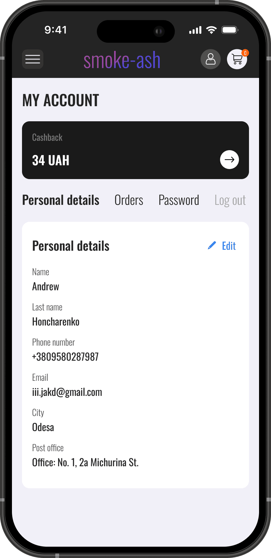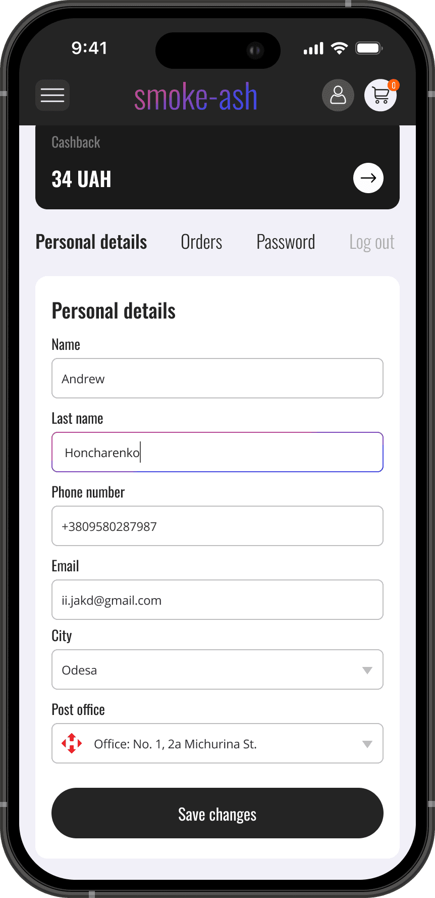 Personal details/Editing